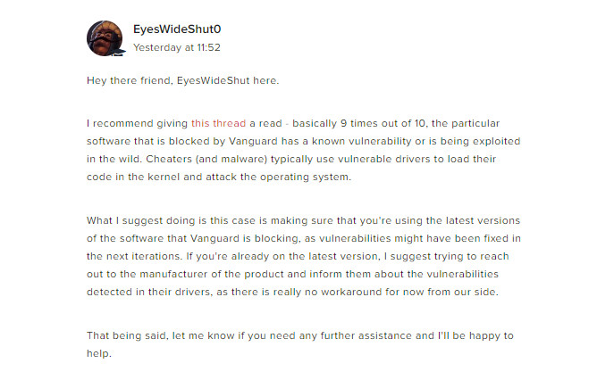 thank you for thae hard work i just want to asking u for fix a new problem i dont know if u know the new riot game called valorant it does contain anti cheat system which blocks ur patcher atikmdag.sys i contact with riot they told me they cant do anything by them its up to program made if he can fix the problem like detecting it like a cheating program ill upload photo to see what they say so u can understand so please if u can fix the problem and what causing it i can play valorant at all |
