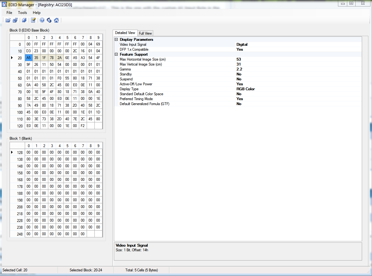 - This is the one with the custom A5 Input Byte in the EDID + CRU. The configurations under this adapter lets me push my monitor upto 220MHz (1080p@92Hz) without problems. It won't go any further though (I think it's the monitor's max?).(08-01-2013 05:23 PM)ToastyX Wrote: I don't know what HD3D looks for. What happens if you disable the extension block? I never enabled the Extension block to begin with. It has always been disabled. EDID Manager shows Empty block on the second block. Look here - Thanks again ToastyX. |