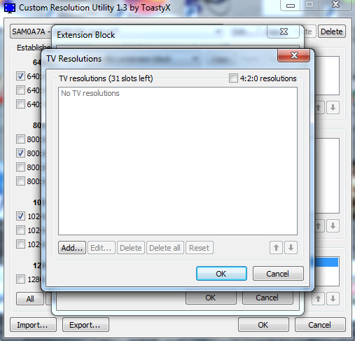 (05-02-2017 10:38 AM)CeLioCiBR Wrote: hello there xDThat's strange. Edit the extension block and if there's a TV resolutions data block, edit it. If any resolution is listed in bold, edit it and uncheck the "Native format" option. (05-02-2017 10:38 AM)CeLioCiBR Wrote: The reset-all.exeYes. |