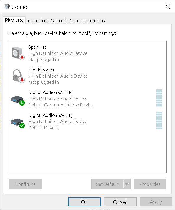 The desktop computer is configured as follows: Gigabyte P55A-UD4P Motherboard (no on-board graphics) Intel Core i7 CPU 860@2.80GZ w/ 8GB RAM NVidea GeForce GTX 260 896MB RAM w/ latest NVidea driver 342.01 (2-DVI outputs) Windows 10 Pro 64-bit w/ all updates The TV is an LG 55" 4K OLED55BXPUA They are connected with the following cable: DVI-D to HDMI 24+1 Bi-Directional 1080p Adapter Cable A kind person on AVForums helped me resolve my initial problem of no video per this thread via CRU, but we were unable to get the audio working from the computer to the TV and he suggested I seek assistance on this forum. The audio is configured in CRU as follows there were no audio entries for stereo PCM: CRU main screen go to extension blocks: CTA-861 (add) Data Blocks Audio Formats (add) LPCM 2 channel sample rates 32/44/48 bit-depths 16/20/24 Speaker Setup (add) * Front Left/Right If I go to the NVidea Control Panel, it looks like the driver is seeing the LG TV... But when I open Windows Sound Settings I only see the spdif optical and headphone outputs available... I'm stuck at this point and don't know whether there's a conflict between my CRU definitions and NVidea Control Panel. Any advice would be appreciated...8-) -Steve D |