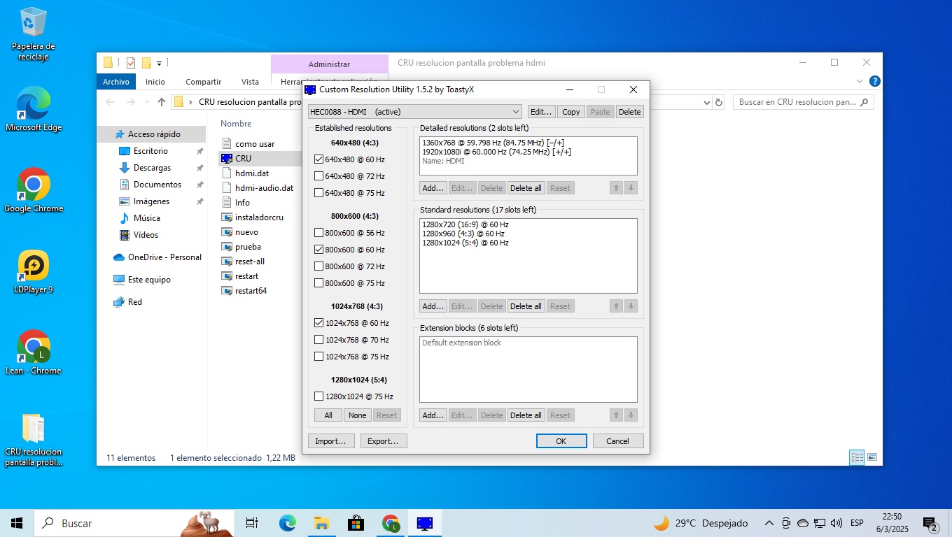 (03-06-2025 06:55 PM)ToastyX Wrote:(03-06-2025 06:11 PM)p14t1pu516 Wrote: Sorry for my English, I meant safe mode. Yes, it's exactly the same pc, only I installed windows 10 on a hdd (I had an ssd before). The hard drive is fine, I formatted it in ntfs.That really sounds like a driver issue. Can you show me what you have in CRU? Maybe the newer drivers have a bug and you were using an older driver. The driver link has several versions that you can try. I would try the oldest first to see if that works. Only issue is Windows might automatically upgrade the driver later. There is also this driver which is older and works with your GPU: https://www.intel.com/content/www/us/en/...ndows.html I installed the old drivers, but the same thing keeps happening. I have attached an image of what I have when opening cru before deleting the extension block and exporting the .exe. Many thanks. |