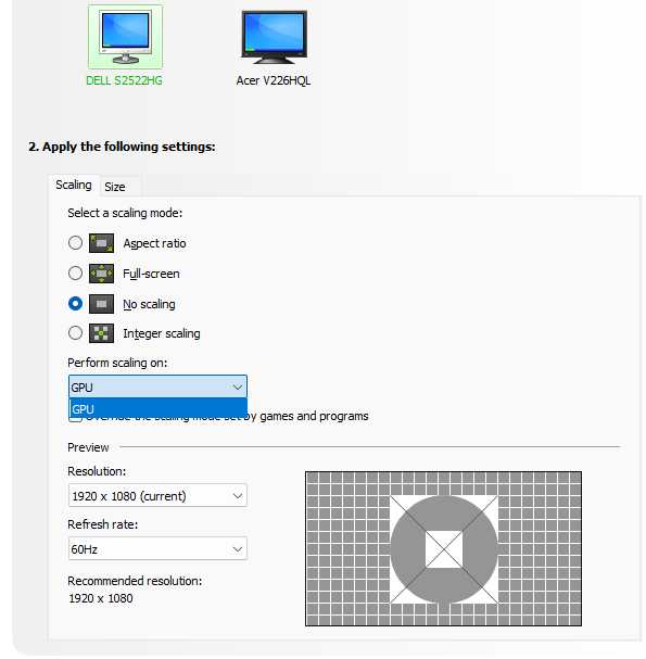 I need help with working the display scaling stuff. I would like to be able to use true stretched res and be able to make my monitor native to an odd res maybe something like 1550. I’ve done this process before on another monitor I've used in the past and I've done everything the exact same. Everything goes perfectly until I want to use the new res I picked out. When I go to nvidia it would normally show that I can’t use both GPU scaling and Display but after I used “restart64.exe” my Display option was gone and got swapped to GPU only. I cant use native res because of this and it does look like my monitor should be able to use CRU because I’m always given the option to choose between Display and GPU until I press “restart64.exe”. I went back and tried this on a different monitor and it worked just fine but it wont work for the one I want. Specs: Monitor- Dell S2522HG GPU- 3070 CPU- Ryzen 5800x (The images below show with and without Display. The image that shows display scaling as an option is before I press “restart64.exe”. The one with GPU is after I press “restart64.exe” and it only locks it at GPU and no longer gives me the option to use Display.) If there is a way to fix this or something I’d love to know. Thank you. |