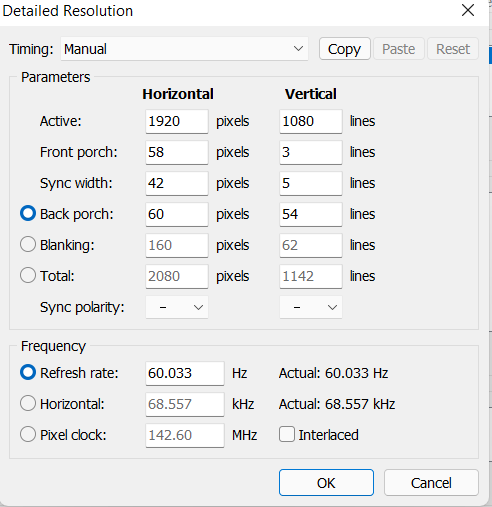 - Ryzen 4500u - AUO5F2D screen with 40-60hz freesync range. any idea why i cant change the freesync range to 30-40hz? I've tested with custom resolution at 30hz and the monitor works fine. the spec i tried this in CRU, but still stuck with 40-60hz range i copied the H rate and pixel clock from a tutorial someone posted on reddit, for a completely different monitor. is my issue due to incorrect pixel clock and h rate? how to find the right values? thank you |