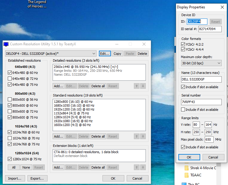 (08-17-2021 07:46 PM)MasterofSalt Wrote: It's still there, but now there is only 1 entry per monitor not 2 for the secondary and 3 for the primary... I can select Delete on "default extension block"...I don't know why it's not loading the extension block, but I have a copy that you can import with the range changed to 80-164 Hz: DELD0F4.dat (Size: 985 bytes / Downloads: 548)
