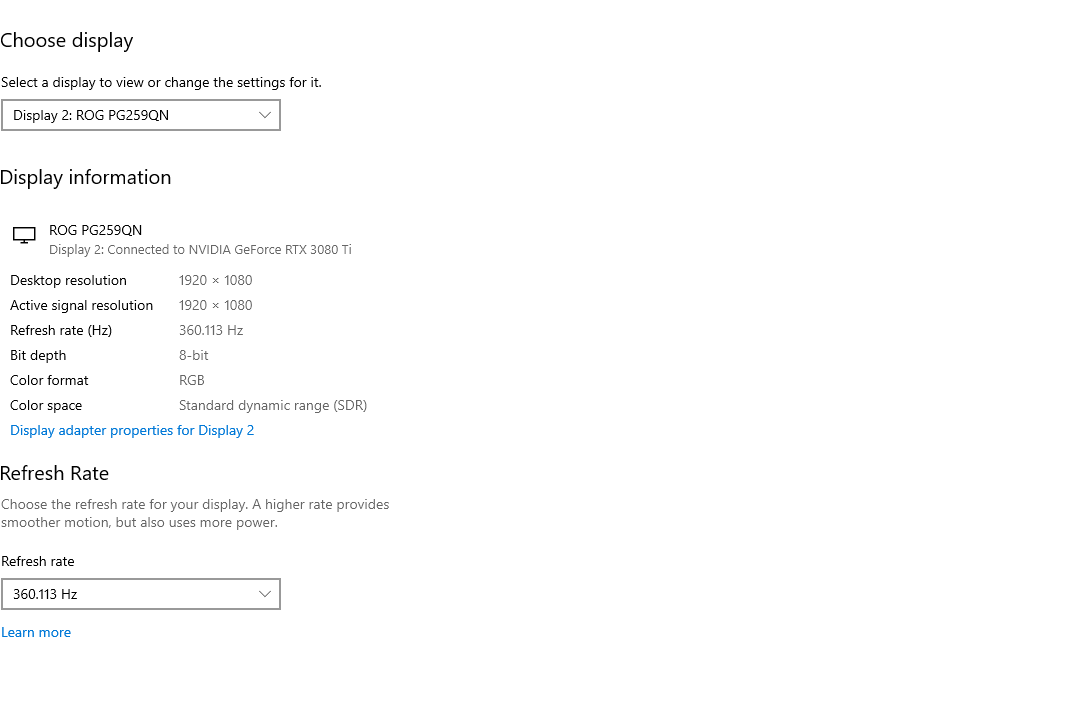 (08-27-2021 09:48 PM)ToastyX Wrote:(08-27-2021 08:31 PM)dr17 Wrote: Recently updated to Windows 10, and my graphics card (Radeon RX 570 Series) is having issues with the correct default resolution output (monitor is a VX2453 series). It appears 1920 x 1080 is the recommended setting (and likely provides the best resolution), however, at 175% scaling I am missing about one-half of each desktop icon aligned top/left and half of the taskbar. Cycling through various potential resolutions only offers bad upon worse resolutions. Any idea what is happening here and if CRU custom resolution would help? I rolled back the driver on the graphics card, but it appears to have made no impact.That sounds like an overscan issue: https://www.monitortests.com/blog/fixing...an-issues/ Thanks - it absolutely was. Going into my AMD Radeon control settings and setting the HDMI scaling to 6% seems to have done the trick. |