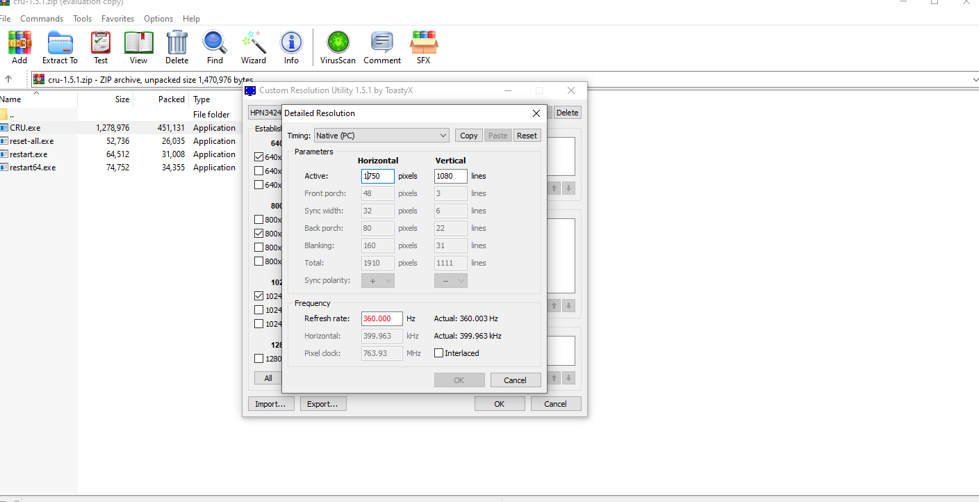 Today tried to put my custom resolution as native 1750x1080 on 360 hz But it wont work for me , the number of hz just turns red and i cant press ok . What is the problem ?