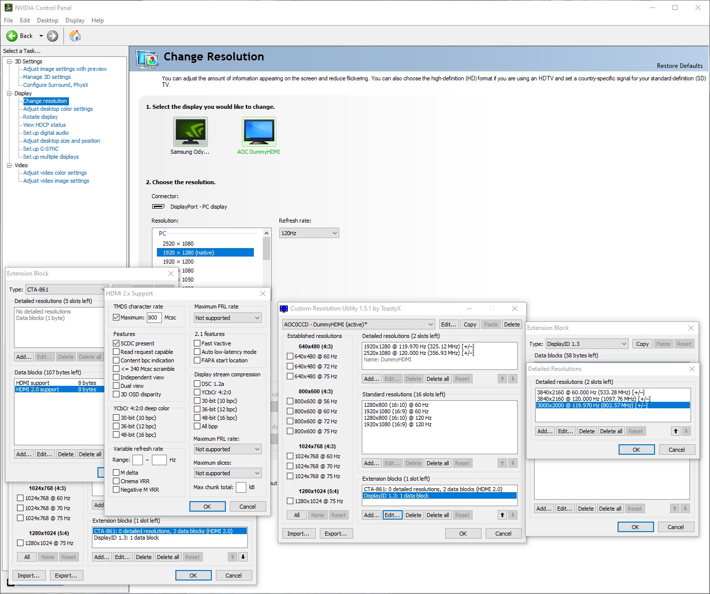 (09-01-2022 03:30 PM)aelius Wrote: I'm having trouble adding 4K resolutions to an HDMI dummy plug I use for remote access.Dummy plugs are still bound by pixel clock limitations. Dummy plugs are usually HDMI 1.4 (340 MHz limit) or DisplayPort 1.0/1.1 HBR (360 MHz 8 bpc/480 MHz 6 bpc). |