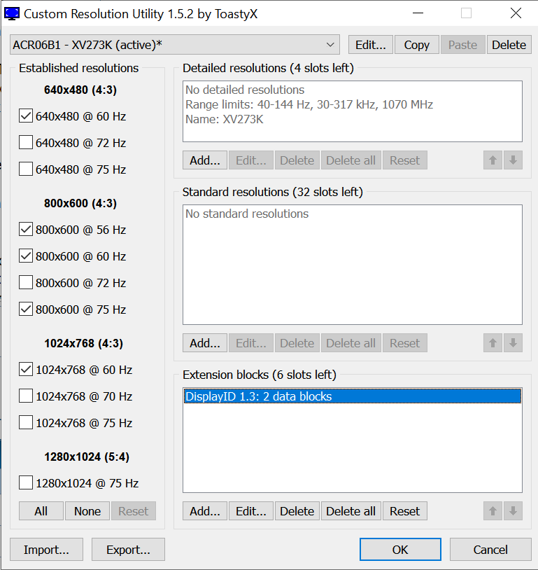 I really want to replace the existing 165Hz profile with 120Hz, but I'm worried that I'll screw it up. Maybe there is an owner of a device with old firmware who is ready to put a screenshot from the Custom Resolution Utility for 120Hz settings? |