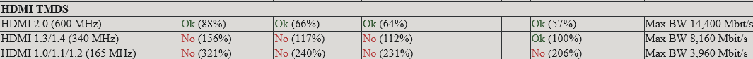 ![]() So I have several questions about HDMI 1.4 and pixel clock limits. Im currently using a dual gpu system (non mux) with an intel uhd 630 and gtx 1650, and I wanted to know if custom resolutions above 300 or 340 mhz would work, since the hdmi out comes from the intel gpu. Im aware there isn't a pixel clock patcher for intel, but I think I heard you mention something about HDMI support display block a while ago. Would setting the max TMDS clock bypass this? I just want to make sure since my new 1440p 360hz monitor still hasn't arrived and I plan to use a custom resolution of 1920x1080@250 for competetive gaming, since that's the max on hdmi 1.4 at 10bit with yuv 4:2:0. I used this tool to figure that out: https://tomverbeure.github.io/video_timings_calculator Also Regarding this tool, the 1920x1080@250 is 543 mhz, obviously far higher than the advertised limit for udh630 and hdmi 1.4; however, It claims that it's possible to work either way. Is this because it doesn't count the gpu pixel clock limit or is this a program error? Thanks in advance