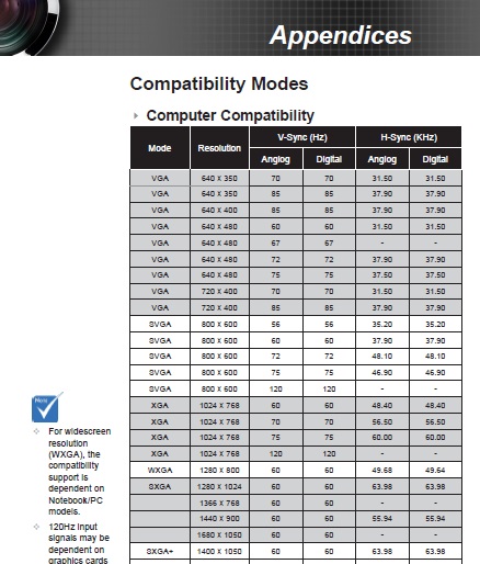 i think what you are looking for is in the manual " Compatibility Modes" Take a look please, i attached an english copy of the manual. Here is another stupid question for you: Is it possible to delete or modify the EDID of the projector? Cause i may have done so... Or is that what we are doing anyway the whole time with the CRU? thanks, appeciate what u do. i guess there is a good chance you cant see s%&ยง on the attached files, huh? Here is the link to manual, page 47,48 and 49. http://www.google.at/url?sa=t&rct=j&q=&e...7178,d.ZG4 |