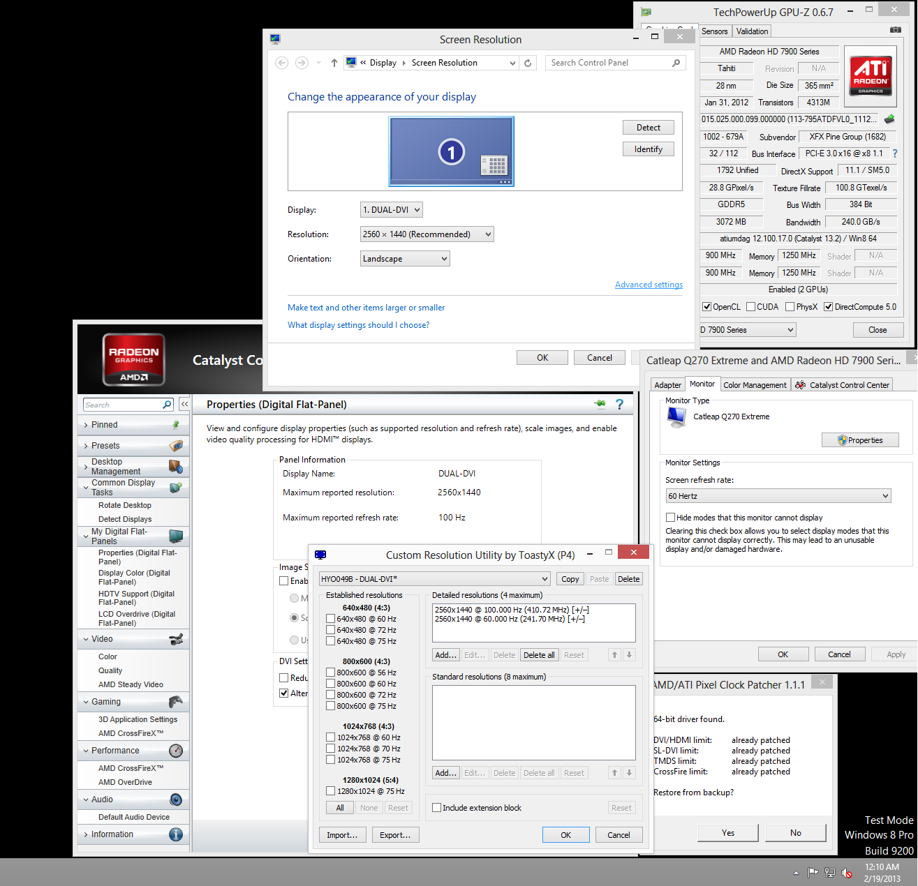![]() CCC sees that the monitor can do 100Hz, but still gives me the option for up to 60. I've had it at 110 Hz for a long time, same with when I had GTX 680 SLI. So my monitor shouldn't have a problem doing 100Hz. I also put on a second Crossfire bridge to see if it helped, but it made no difference. I read through all 5 pages on this thread to see if my question was asked here, but I've followed instructions for everything. Enabled testmode, then installed Catleap monitor drivers. Rebooted. Patched the drivers. Rebooted. Opened CRU and set the 100hz resolution in there and unchecked the extension box. Rebooted. Still no sign of the 100Hz option. It was just working fine with Windows 7 Ultimate 64-bit, and I was using 107Hz. What gives?