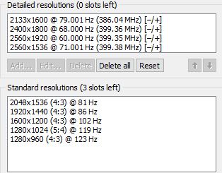 "NVIDIA does not support more than 8 standard resolutions." Does AMD support more? Because I'm only able to use 8 slots. |
