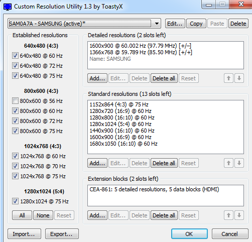 Keep in mind this solution is NVIDIA-specific, and deleting the extension block removes HDMI support, which normally isn't a problem unless you need audio. AMD doesn't have a way to remove 1920x1080 @ 59 Hz without changing the native resolution.