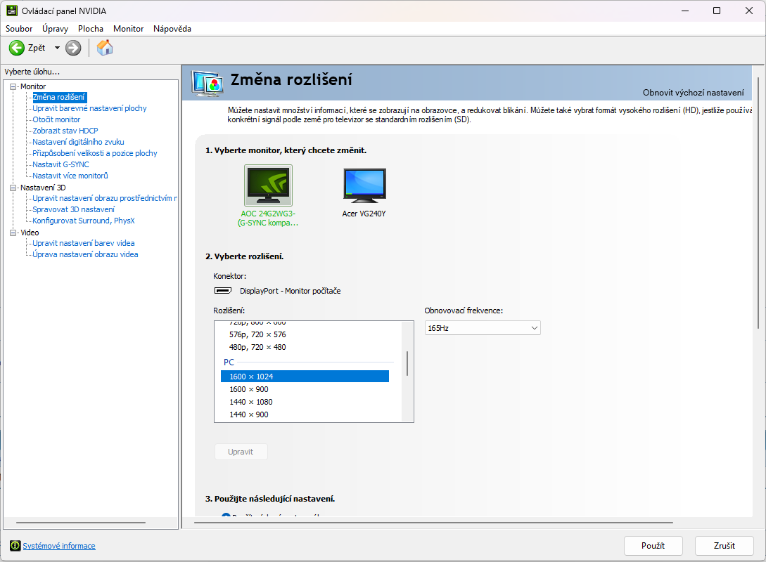 NVIDIA's driver also adds the resolutions from each monitor to the other monitors as scaled resolutions if they don't exist so they can be mirrored. The fact that 1650x1080 shows up on the other monitor means the driver recognizes the resolution was added, so if it doesn't show up on the edited monitor, then that's an NVIDIA driver bug. Running reset-all.exe and rebooting should remove all changes. I don't see any changes on the other monitor, so there's no reason the resolution should still exist after removing it. |