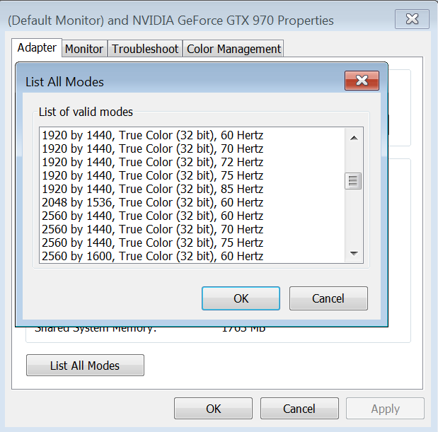 (06-05-2015 04:54 PM)jdubzisfaded Wrote: What I meant by 320MHz when using nVidia custom resolution, is that I used CRT Timings which brought me to 312MHz and then added extra pixels to the total pixels amount in the manual timings section which may have made it look better or worse I am not a TV guru but I know my way around a PC.You shouldn't do that unless the TV can't handle standard timing parameters correctly. You're just wasting bandwidth with a higher pixel clock. Use the "LCD standard" timing option. (06-05-2015 04:54 PM)jdubzisfaded Wrote: and yes 1440p does not show up in Windows but it shows up in nVidia custom resolutions.I don't understand what you mean because the problem doesn't make sense. If you mean the resolution is selectable in the NVIDIA control panel but not in the Windows screen resolution settings, then I don't see how that could happen unless there's a driver bug. If you mean the resolution is listed in the NVIDIA control panel as a "Custom" resolution instead of a "PC" or "HD" resolution, then that could only happen if you added a custom resolution using the NVIDIA control panel, but then it should also be listed in the Windows screen resolution settings. CRU resolutions wouldn't be listed as "Custom" resolutions, and you don't need to add the same resolutions with both. (06-05-2015 04:54 PM)jdubzisfaded Wrote: One Time it even showed as native so I thought it was sure to work. Yet as I said I just got an incompatible signal causing my display to display a "no signal" blue screen.The first detailed resolution in the main window is considered the native resolution. Your screen shot covers up the main window, so I can't see what you have defined for the native resolution. You need to define the resolution you want to be native as the first detailed resolution. (06-05-2015 04:54 PM)jdubzisfaded Wrote: Also, will the CRU work on all the driver versions.CRU is not driver-specific. CRU will work with any driver that supports Windows EDID overrides. (06-05-2015 04:54 PM)jdubzisfaded Wrote: And why do I have no need for pixel patcher. From what I have read on it I will be limited to 165MHz on HDMI.That is the case with single-link DVI and HDMI on older cards. Newer cards can handle higher pixel clocks with HDMI, but HDMI support must be defined in the extension block or it will behave like single-link DVI. (06-05-2015 04:54 PM)jdubzisfaded Wrote: I read that I needed an HDMI.dat file but I am at my programming job and can't remote in to my pc too much.The hdmi.dat file just contains an HDMI support data block with the default settings, so you don't need it if you already added it manually. (06-05-2015 04:54 PM)jdubzisfaded Wrote: If all of my BS is not 20$ I understand I am being a pain. Name your price in a PM and I will think if it is reasonableAny donation is welcome. (06-05-2015 04:54 PM)jdubzisfaded Wrote: edit 3: lol I think my monitor may be off... and thats the only reason it seems to work. I am an idiot. DAMNITSome monitors won't send an EDID when they're off or switched to a different input, which can cause problems with monitor detection. Did you get everything sorted out? |