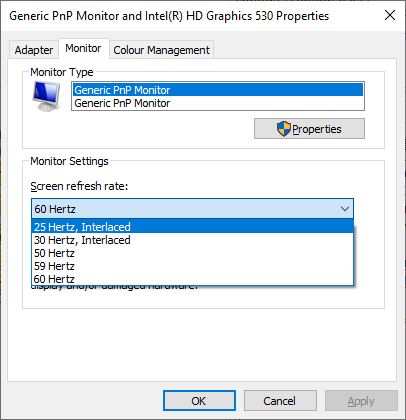 I'm trying to modify the refreshrate for my second monitor plugged into the laptop's HDMI port. it's an AOC M3285 monitor and it does 70 or 71Hz overclocked. I added the new refreshrates and even deleted the old ones but it just won't show up in windows settings..... I have the monitor setup as second display only as main monitor. it handles a different scaling than the internal display. I can see that. It's not duplicated. Anyone any idea whats going on? Got it sorted! needed to add the resolution as LCD standard and not LCD native |