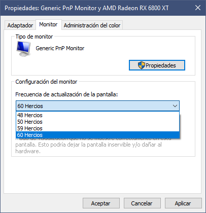 (01-18-2021 06:59 PM)ToastyX Wrote: That's never been possible. Windows only supports one of each refresh rate, and 59.94 Hz rounds to 60 Hz. "59 Hz" is an alias for 60 Hz, not a separate refresh rate. Of course it is, that's just how I've been using your software for the past four and a half years: 59,94 Hz was shown as "59" and 60 Hz was shown as "60". It still is like that right now, in fact, but I had to use the Adrenalin software. |